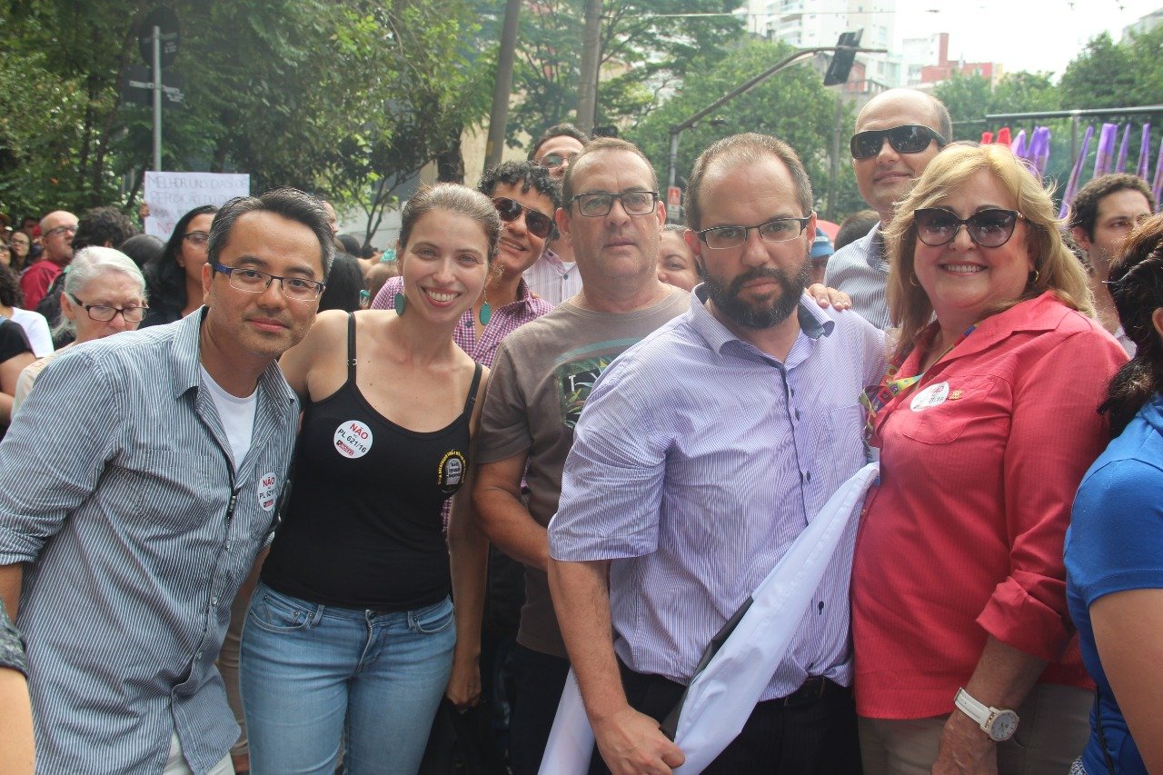 O presidente da Astcom, Eduardo Carrion, e diversos servidores da categoria do CMSP e do TCMSP, participaram, na tarde desta terça-feira, 28 de março, da manifestação contra o Projeto de Lei 621/216 que aconteceu em frente à Câmara dos Vereadores de São Paulo.