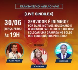 Live dia 30/06 – Servidor é inimigo? Por quais motivos Bolsonaro e o Ministro Paulo Guedes querem colocar uma granada no bolso dos funcionários públicos? Leia Mais » 22 de junho de 2020